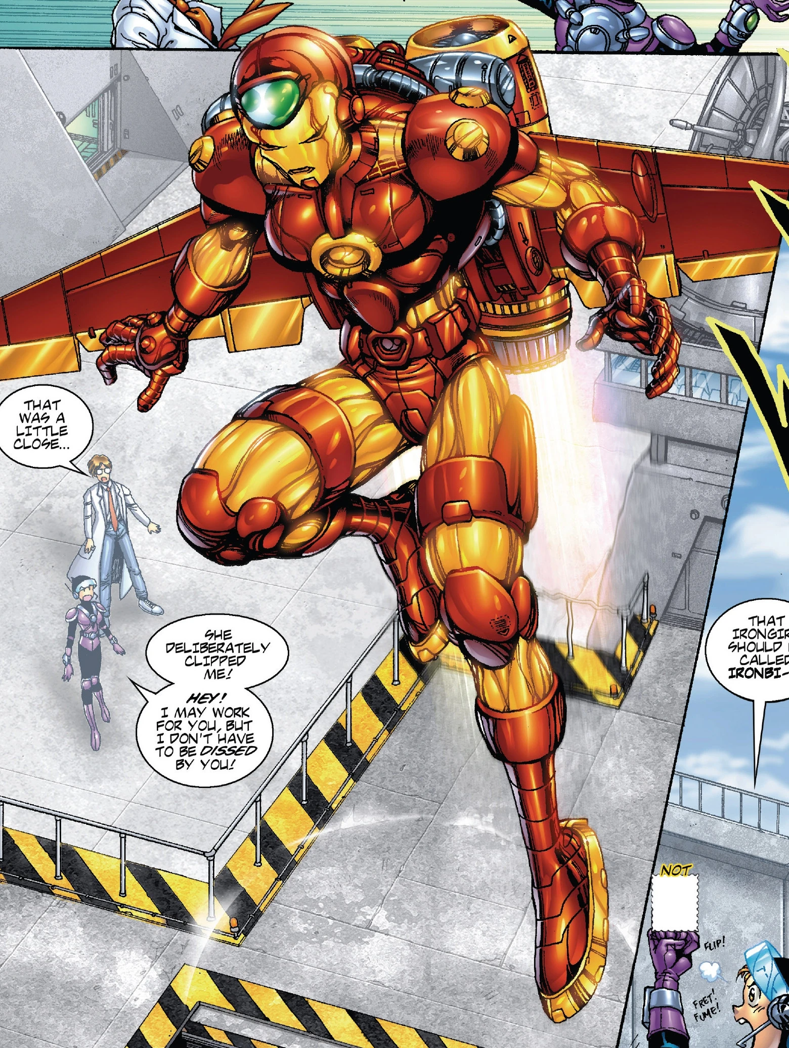 - Female version of Iron Man.