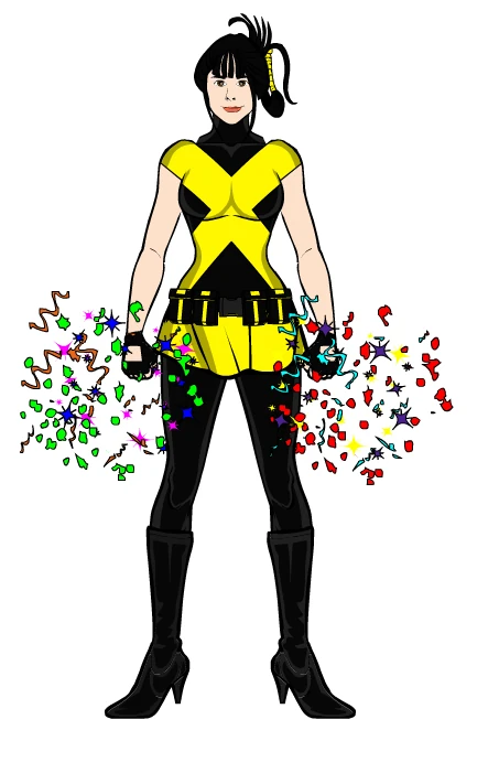 - Pyrotechnic Manipulation: She regularly uses this power to create/generate, shape and manipulate plasmoid projections she regularly calls her fireworks, often taking the shape of brightly colored streamers, sparklers and multi-colored energy globules that exploded at her mental command. Obeying her mental control traveling where she directs them, arranging themselves however she saw fit and exploding whenever she wished.