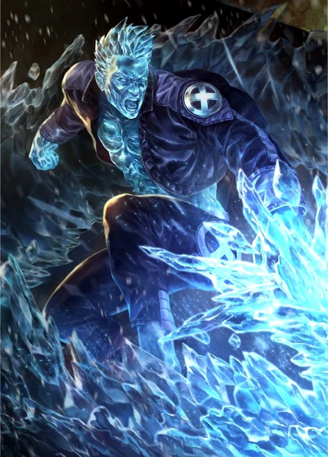 Before the years of Ultron Revolution, Iceman seemed to have the same history with his Earth-61615 counterpart, along with some few additions throughout his life during the modern day, until the delusional and megalomaniacal machine Ultron had started an all-out war against humanity, along with the intent of exterminating all life on Earth, and extinguish those who dares to oppose him and his ideologies. Unfortunately to Bobby, he lost his entire family, including his long-time beloved fiancé Judah Miller, during the first week of the A.I.'s attack, as he unleashed his Ultron Sentinels in Long Island, reaching his childhood home that ultimately led to the demises of his loved ones, much to his irrepressible grief in losing all of them.